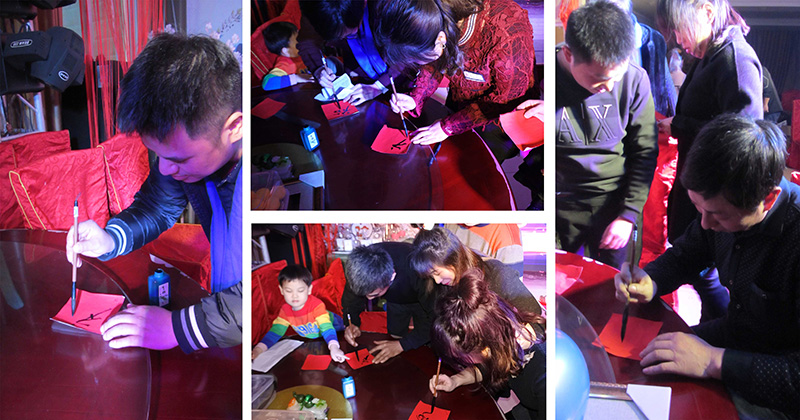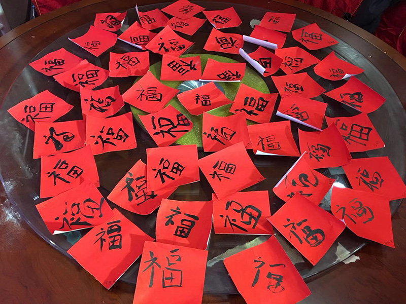 集福送祝福:每一位員工都將“福”字寫下,滿滿一桌子的祝福,送個(gè)自己,送個(gè)大家。