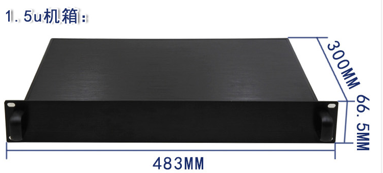 1.5U全鋁/鈑金機箱有1.5U300mm深,其他深度需進行定制,具體尺寸為66.5x483x300MM,價格為279元。