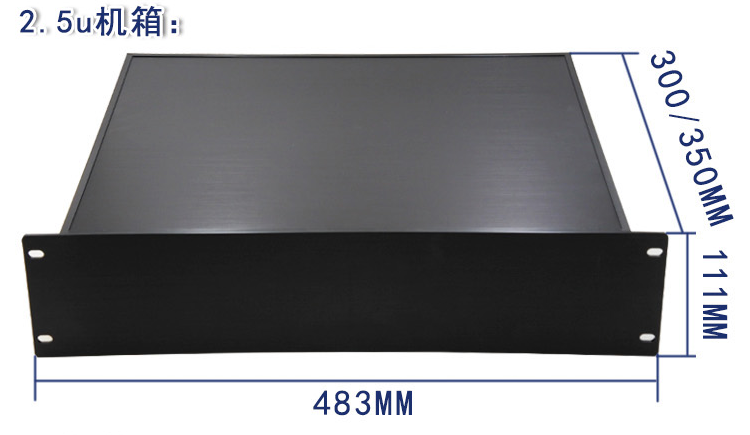 2.5U全鋁/鈑金機箱有300mm深和350mm深兩個型號,價格分別為319元和379元,尺寸分別為111*483*300MM和111*483*350MM。