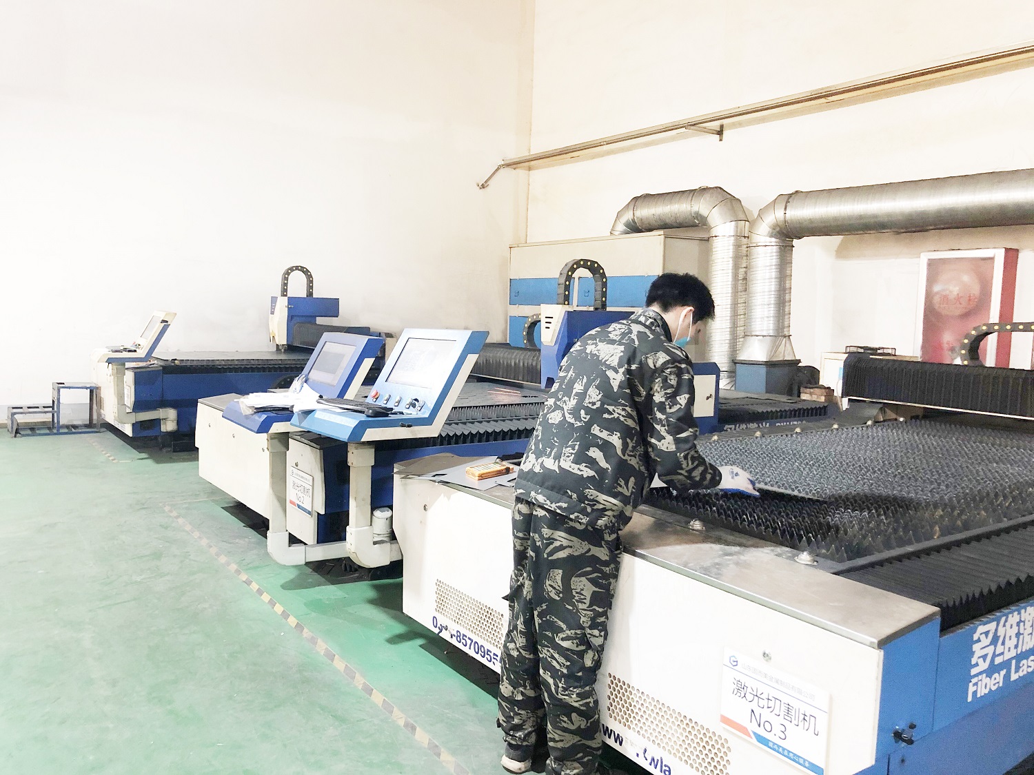 第一步下料:下料是指確定制作某個設備或產品所需的材料形狀、數量或質量后,從整個或整批材料中取下一定形狀、數量或質量的材料的操作過程。操作時就需要根據產品圖紙的要求,在專用切割機上將板材切下。
