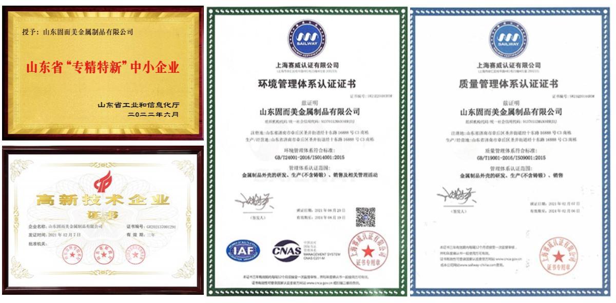 山東固而美金屬制品有限公司一直致力于為客戶提供更好的外殼解決方案,公司有專業的設計團隊,獲得國家專利共39項,實用新型專利35項,外觀專利3項,發明專利1項,產品均通過ISO9001質量體系認證和ISO14001環境管理體系認證,有成熟完善的生產線,作為專業的鈑金加工廠,企業有三萬件產品的研發經驗。廠家有專業技術工人,含過程檢和完檢兩道質檢工序,全天候工程人員在線為您提供技術支持,選擇我們更放心!歡迎各位廠家、客戶來圖或來樣定制產品。